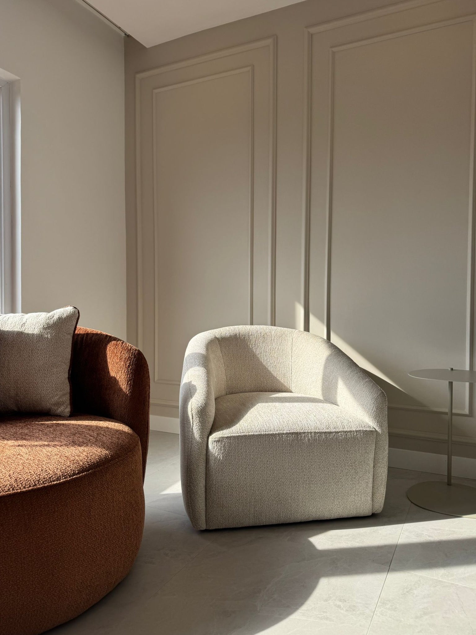 Yumuşak formu, zarif kıvrımları ve boucle dokusunun sıcak hissiyle Boon Berjer; minimal estetiği konforla buluşturur.